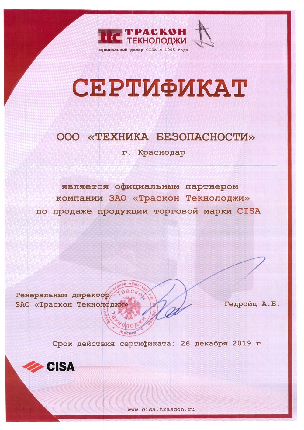 Мы ООО "Техника безопасности" являемся авторизованными дилерами и дистрибьюторами ведущих производителей систем безопасности. В Компании проведена сертификация ГОСТ Р ИСО 9001:2015 (ISO 9001:2015). Допуск СРО РОПК к выполнению видов работ которые оказывают влияние на безопасность объектов капитального строительства.